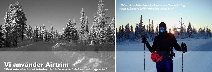 Jag använder andningsmasken på alla pass utomhus i minusgrader och vid hårdare pass också om det är någon plusgrad. Det går väldigt bra att använda Airtrim på teknikpass i skogen.